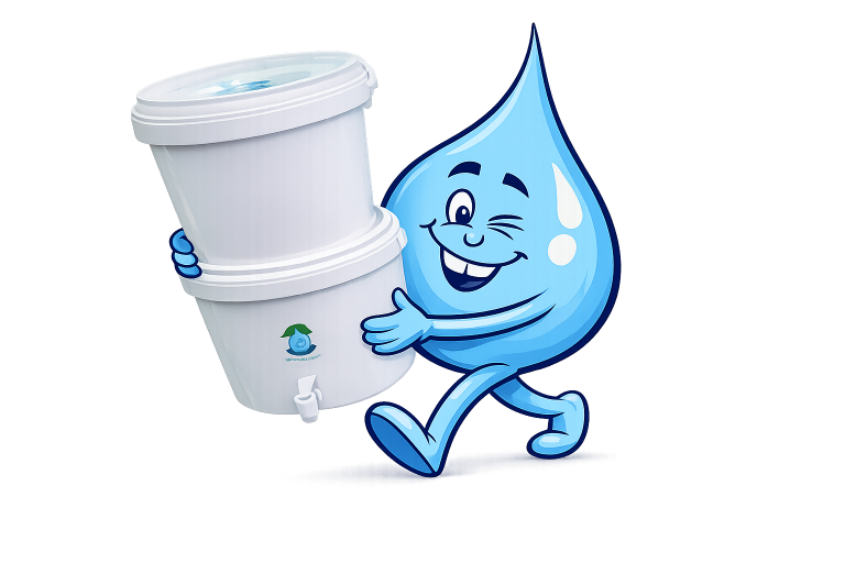Bevat: 2 Emmers (elk 10 liter) incl. deksels, 1 Tulip waterfilter replacement box, 1 tapkraantje, 1 fasthose, 1 reinigingsborstel.